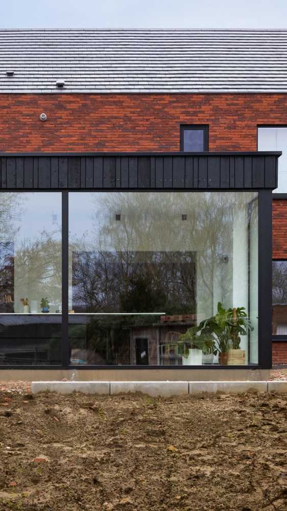 Houtskeletbouw aanbouw met warmtepomp en schuifraam in Wellen